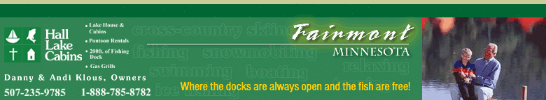 Cross Country Skiing Snowmobile Trails Hunting City Parks Fairmont Aquatic Park Fairmont Raceway Interlaken Golf Club Bowlmor Lanes & Lounge The Fairmont Opera House Martin County Historical Museum The Martin County Fair Blizzard Snowmobile Club The Fairmont Convention & Visitors Bureau The City of Fairmont